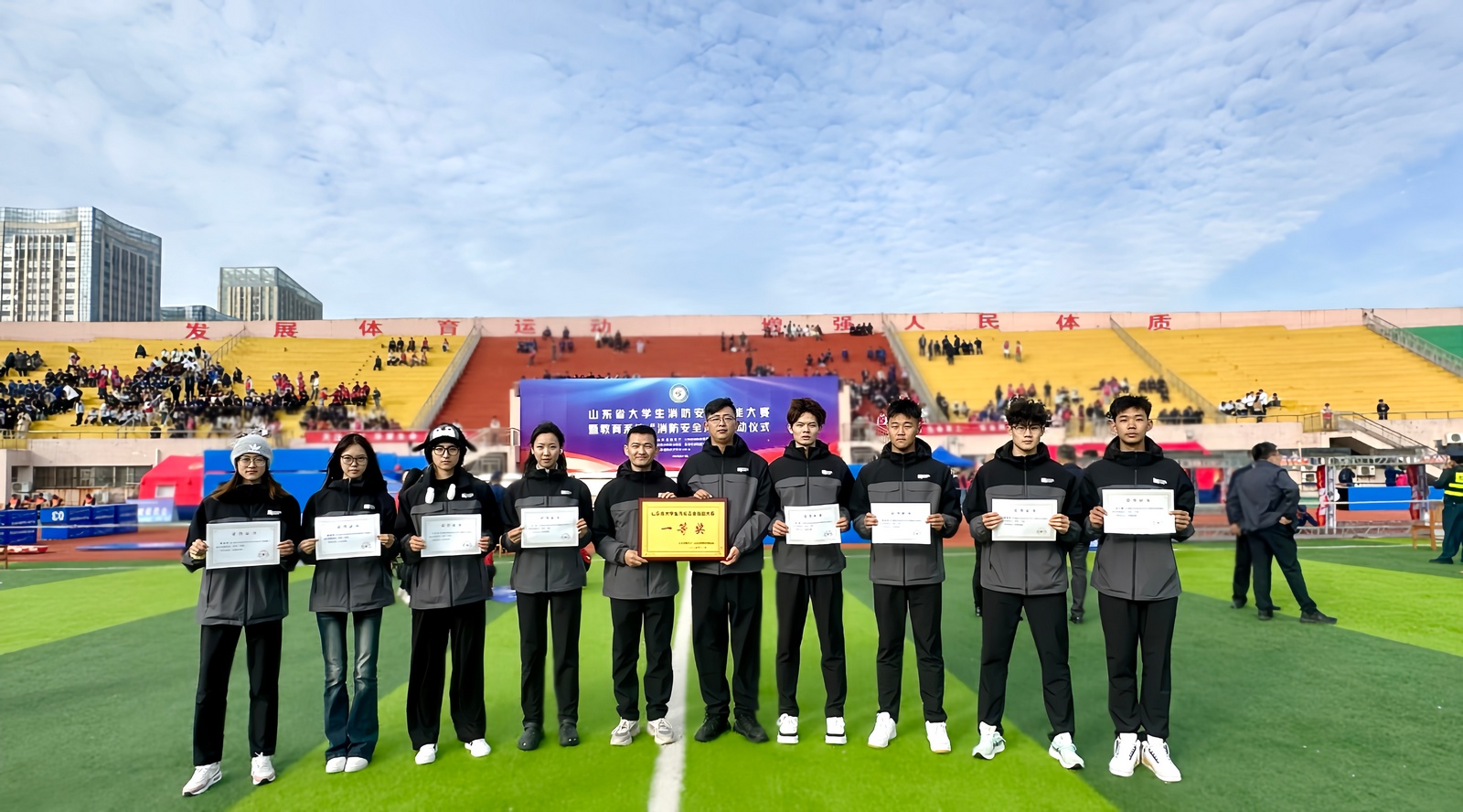近日,首届山东省大学生消防安全技能大赛在日照圆满落幕。本次大赛由山东省教育厅与山东省消防救援总队联合主办,我校代表队凭借扎实的技能功底、出色的临场发挥和紧密的团队协作,在激烈竞争中脱颖而出,荣获本科组一等奖第一名,充分展现了我校学子优秀的综合素质和昂扬向上的精神风貌。
