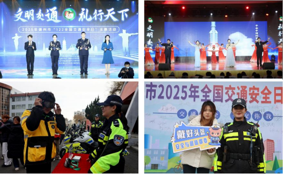 12月1日下午,德州市2025年122“全国交通安全日”主题活动启动仪式暨文艺汇演在我校音乐厅举行。活动由市公安局联合多家市直单位主办。通过《崇礼·明德》《砺剑·护安》《忠诚·永续》三个篇章的文艺节目,以情景剧、歌曲、舞蹈、现场宣讲等形式,生动讲述交通安全故事,展示全市道路交通安全治理成效与交警队伍风貌。德州市副市长、市公安局党委书记、局长滕世雷,校党委副书记张存峰,党委委员、副校长蒋涛涛等与师生代表共同观看,正式拉开全市交通安全宣传序幕。